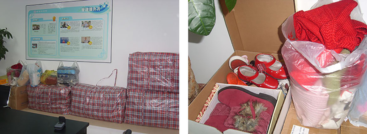 今年我們將繼續發揚愛心,由公司工會組織了“衣舊溫暖”的募捐活動。本次活動開展了近兩周的時間,此次募集到的衣服、褲子、裙子、帽子、圍巾、鞋子等共計218件?;顒油ㄖ怀?,咱們的員工第二天就帶了很多的棉襖大衣、棉鞋過來,看到大家的熱情和關愛,我要真心地說聲謝謝,謝謝大家伸出溫暖的雙手。我想不僅僅我的心里覺得溫暖,當那些人們收到我們寄去的這些東西時,我想他們也會感受到一絲暖意的。