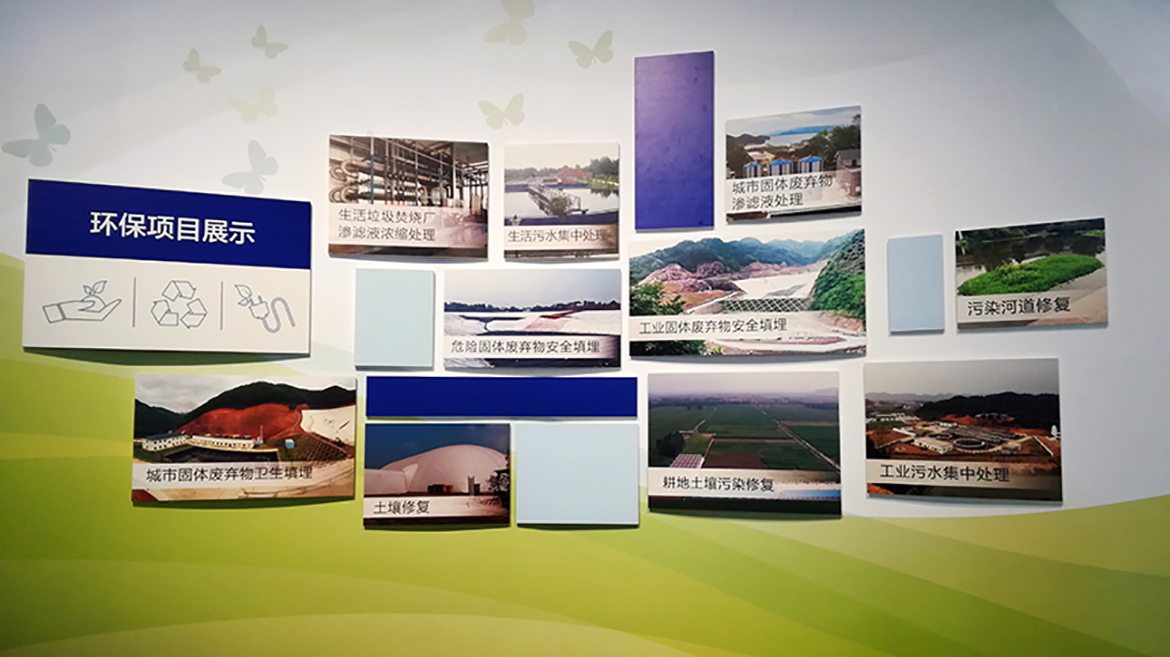 觀賞了實(shí)景模型,我們再看展示墻,上面還有許多滲濾液處理,污水處理,固廢處置等項目的現(xiàn)場實(shí)景照片,這些都是公司承接建設(shè)的項目,充分展示了公司在園區(qū)的關(guān)心支持下,通過科技創(chuàng)新,管理創(chuàng)新所取得的不凡成就。