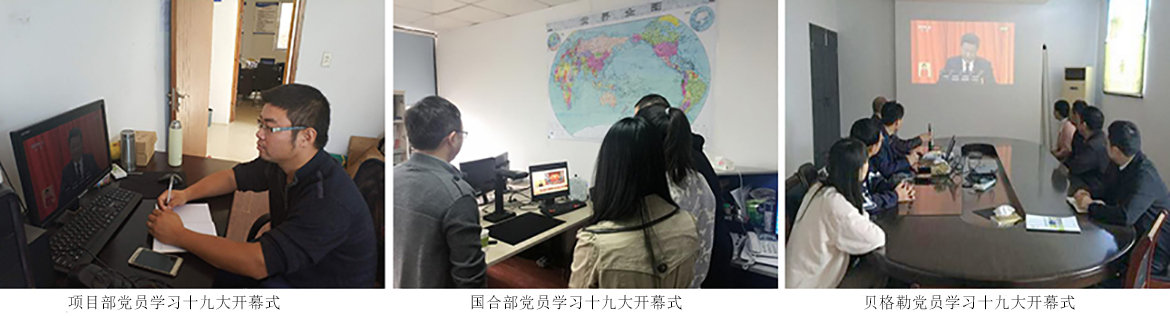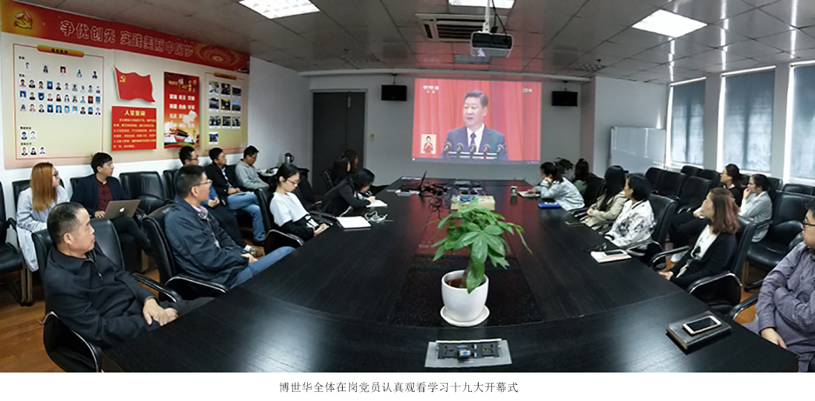 博世華全體黨員在會議室準時觀看了十九大開幕式,因工作原因未能出席的員工也在項目現(xiàn)場或以其他方式準時收看學習。