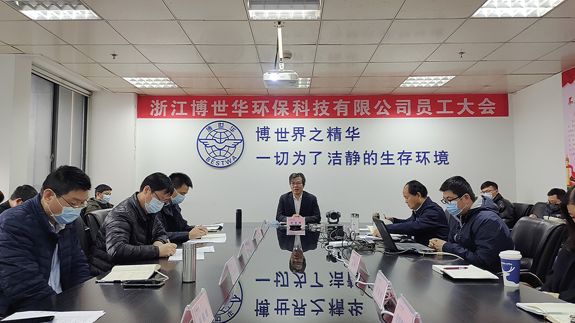 玉鼠呈歡辭舊歲,金牛躍起迎新年。2021年2月5日上午,浙江博世華環保科技有限公司2020年度員工大會順利舉行。本次大會為了更好地落實疫情防控工作,積極響應政府的防疫管控措施,大會采用釘釘視頻直播的形式召開,公司常務副總經理謝文岳主持了本次會議并代表公司做了2020年度工作報告。
